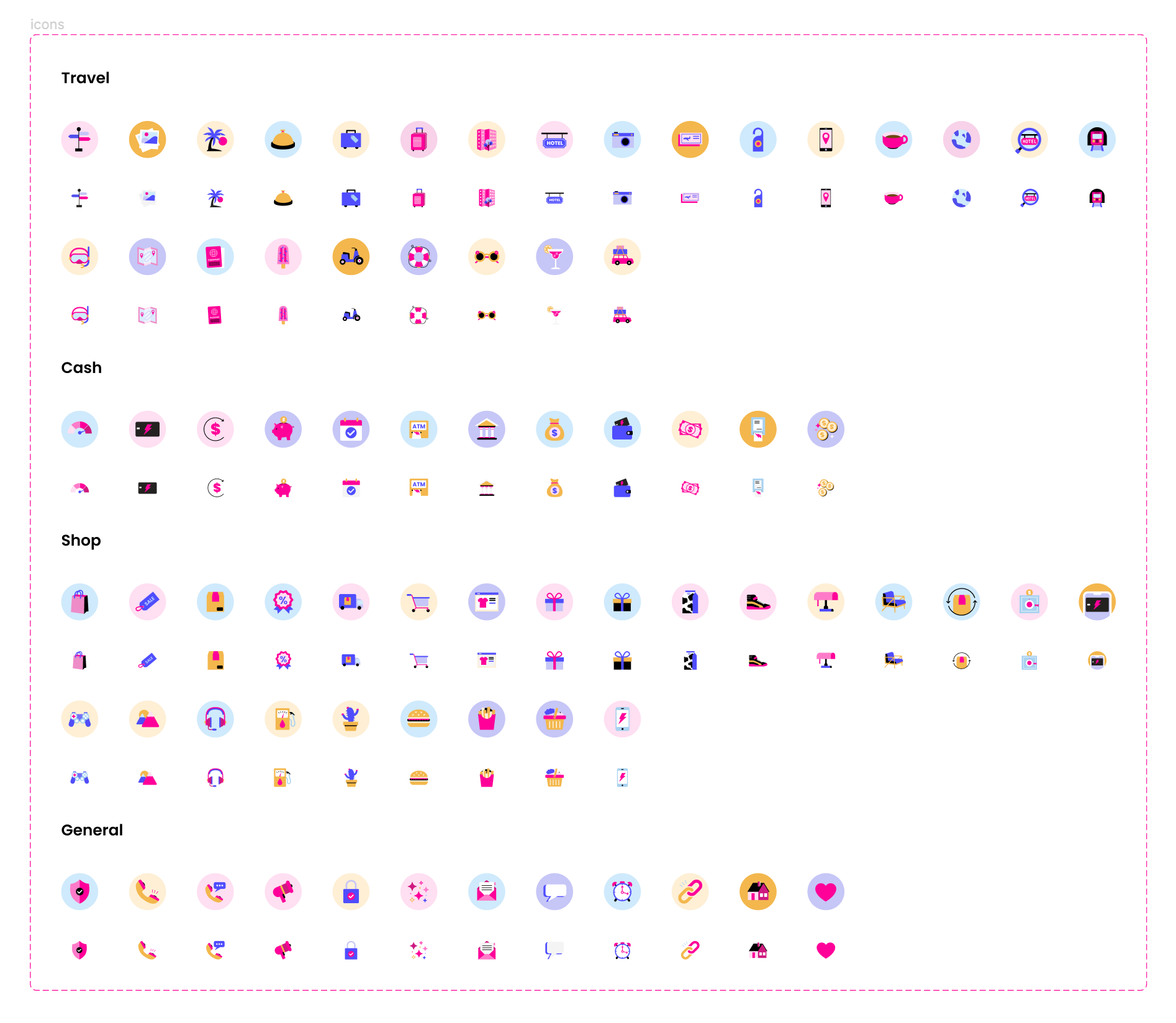 A shared iconography system that was functional across product, web, and marketing was built in Figma. Each icon had a detailed and simplified version in order to be able to scale for multiple placements.