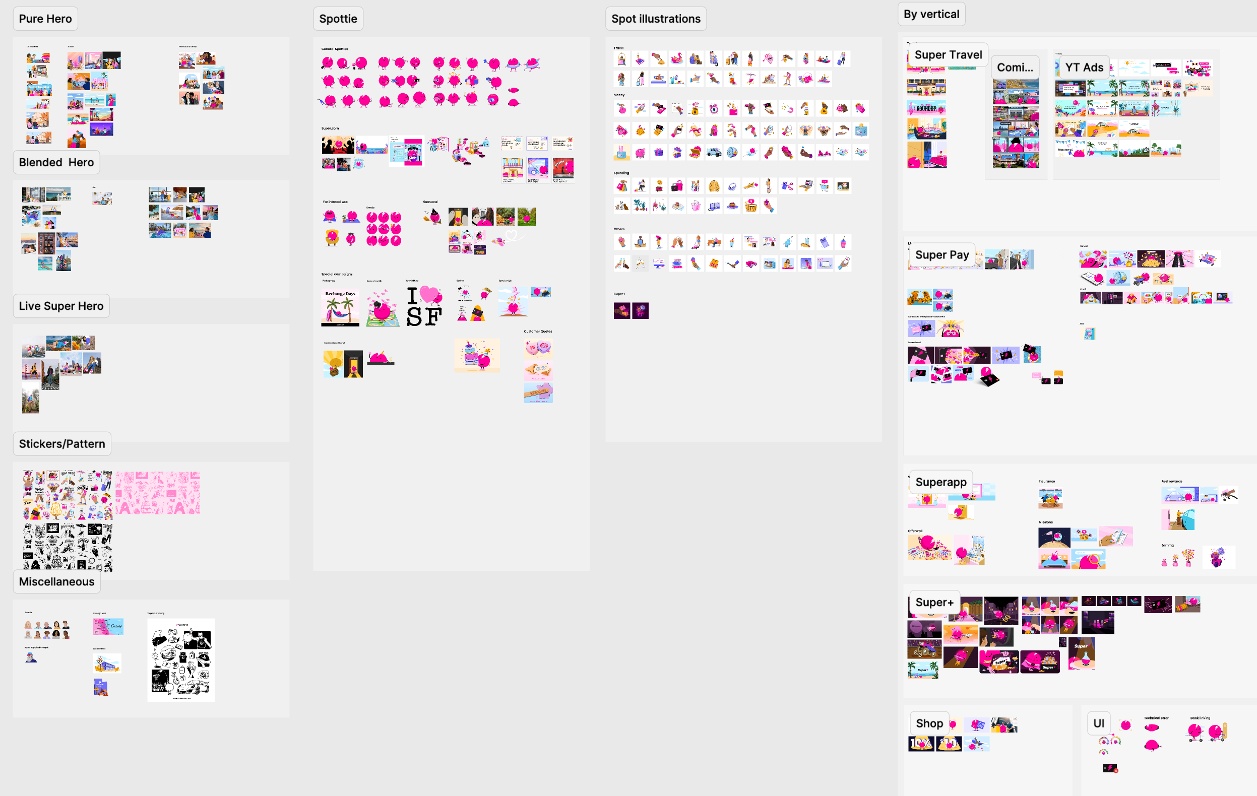 Collaboration with the Product on branding, illustrations, animation, iconography, and UX/UI design across every section of the Super App. A shared design system built in Figma spanned both the app and the website.